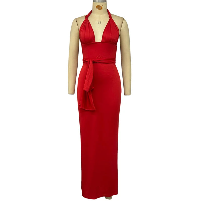 Vestido Longo Faixa na Cintura Costa Nua Tereza